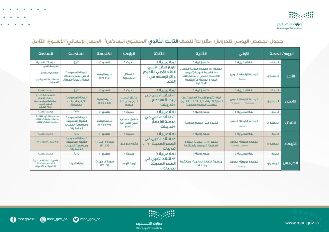 وزارة التعليم عام On Twitter جدول الحصص اليومي لدروس الصفوف الثالث الثانوي مقررات عبر قنوات عين على تردد عربسات 12437 عمودي فى بث مباشر من الساعة 8 ص إلى الساعة 12 30