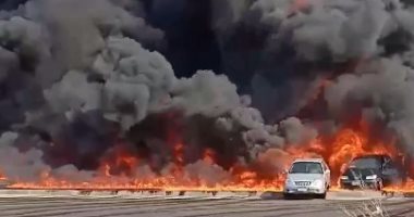 فيديو وصور السيطرة على انفجار بحافلة وقود محملة بـ45 طن بنزين بالعاشر اليوم السابع