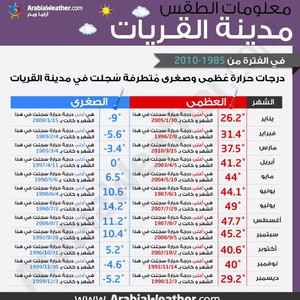 درجات الحرارة الع ظمى والص غرى الم سجلة في القريات خلال الـ 25 سنة الأخيرة طقس العرب