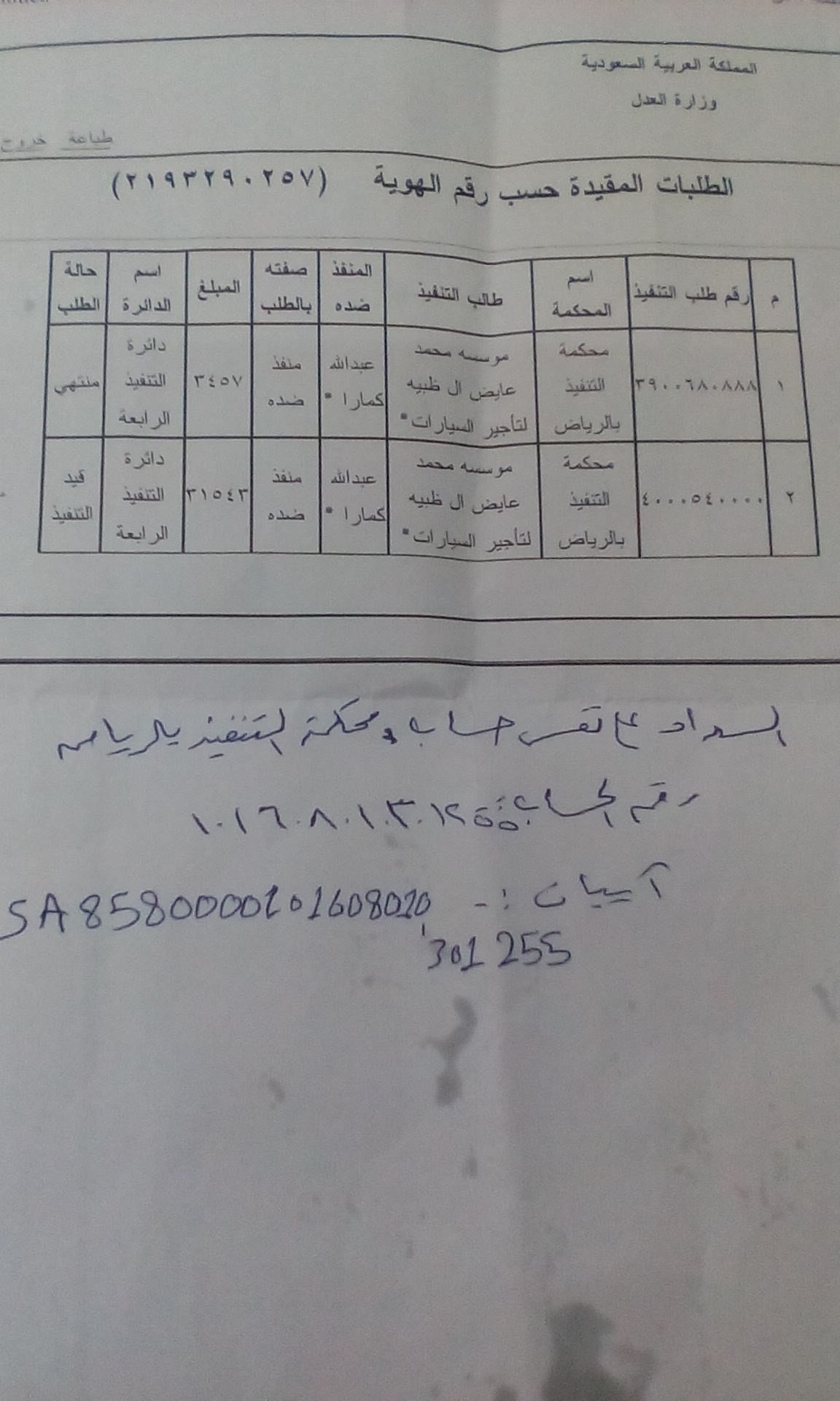العدل تتيح الاستعلام عن جميع تفاصيل طلبات التنفيذ برقم الهوية الإخبارية